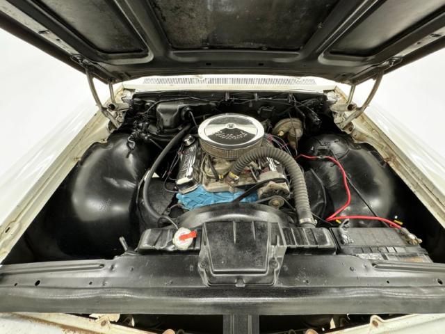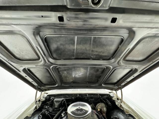 Open the big hood to find plenty of space around the 400ci V8 from circa 1976, an Edelbrock intake, new carburetor, and Erson chrome valve covers. A TH350 3-speed automatic transmission sends power to the 3.23 gears in back while power drum brakes slow things down on all four wheels.