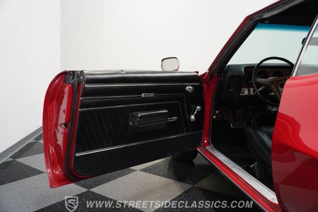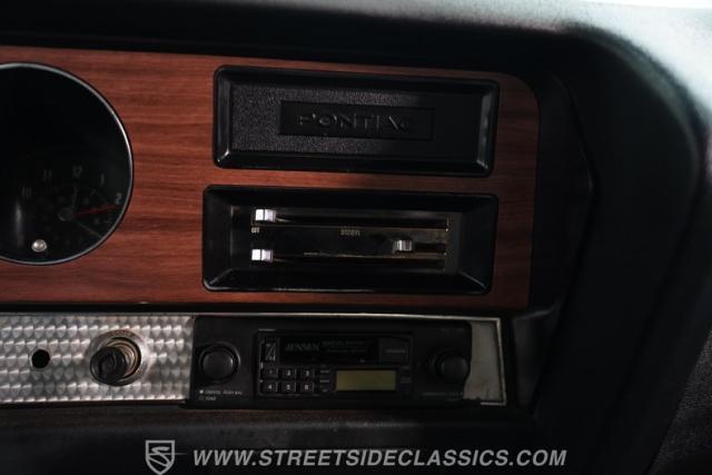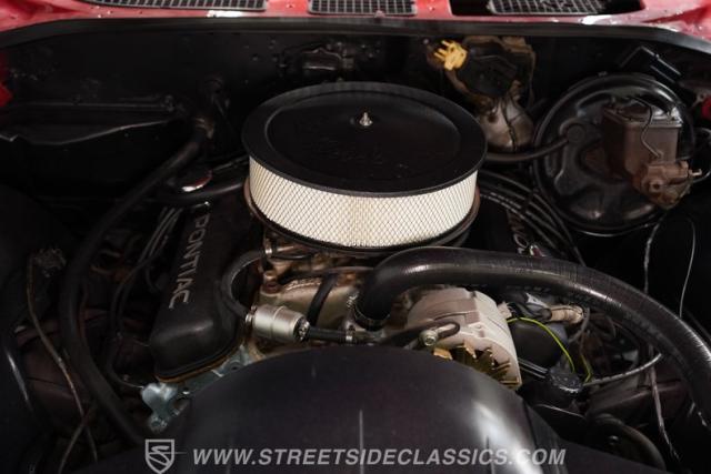 A healthy 455 cubic inch V8 brings serious power to the street fight, channeled through a bulletproof TH400 3-speed automatic transmission. The engine features an Edelbrock aluminum intake manifold, black Pontiac lettered valve covers, power steering, open-element air cleaner and an aluminum air cleaner. A stout 10-bolt rear end puts those ponies to the pavement with authority. The suspension combo - coil springs up front, coilovers and sway bar with boxed trailing arms out back - keeps this street warrior planted through the corners. Power front disc brakes haul this beast down from speed with confidence. The long-tube headers and rumbling dual exhaust system announces your arrival with a deep muscle car growl that means pure business.