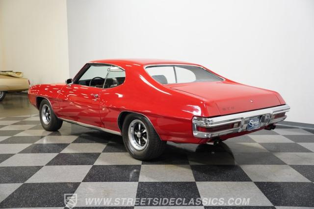 This 1970 Pontiac GTO finished in Cardinal Red paint gleams against its muscular body, creating a street-machine vibe that\'ll make any muscle car fan take notice. Rolling on 15-inch Pontiac rally wheels wrapped with Cooper Cobra Radial G/T tires staggered 225/70R15 front and 275/60R15 rear plant this street brawler firmly on the asphalt.