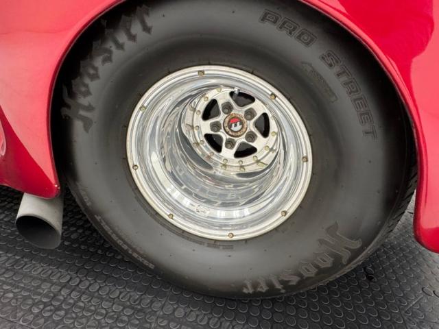 Pivot the front clip forward to reveal a polished 505ci stroker V8 with a BDS supercharger topped by two 1050cfm 4-barrel carburetors. All of this is estimated to produce between 950 and 1,000 horsepower. It is mated to a TH400 3-speed automatic transmission that routes power to a Ford 9\" Strange Engineering axle. Naturally, headers are on board.