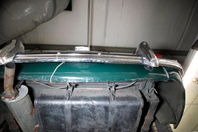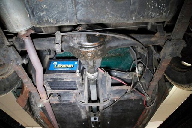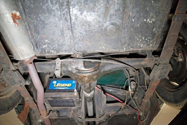 All straight structural steel is underneath and makes up a clean undercarriage displaying just minor road dirt, patina and some surface rust. The wood floor pans are strong and solid with black paint applied, meanwhile the side rockers and unibody are nearly like new, but we note a few amateur welded in repairs on the rear of the rockers. For the suspension, independent coil springs are up front, and leaf springs for the back and drum brakes front and rear are on for the whoa factor.