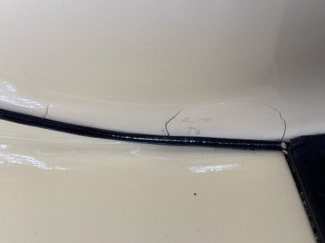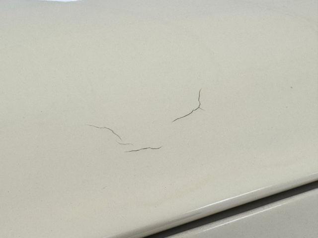 With its tall vertical ribbed stained chrome grille, bullet style headlights, teardrop turn signal housings, and single wide bar chrome bumper with guards along with the standard hood ornament/radiator cap leads the way on this large and expensive looking automobile. All surfaces are bathed in Packard Cream with a slight tone different from the engine cover and front fenders to the rest of the body. The long side vented hood with ornate trim makes its way back to 4 nicely aligned doors with several pinstripes that run the length. All the windows have rounded corners, and this sweeping design carries over to the humpbacked trunk which has a wonderful, arched rear glass just above. Small round tail lights are on either side of a second storage door and just below another wide curved bumper with modest Packard badge in the center. Wide whites wrap 16-inch body matched steel wheels that have Packard badged dish center covers appearing on all 4 corners, connected visually by a wide black running board. Imperfections include cracked paint in several areas and areas of bubbling.