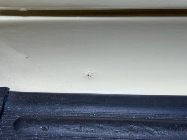 A big solid X frame holds all the upper body and undercarriage working to it, and all is looking very structurally solid with a liberal coating of surface rust. Independent coil sprung front suspension which is seen, and on back are leaf springs. The single exhaust enters a stock style muffler with some heavy pitting in the rust of the shell and tracks all the way to the back where a decorative chrome deflector covers the steel tip.
