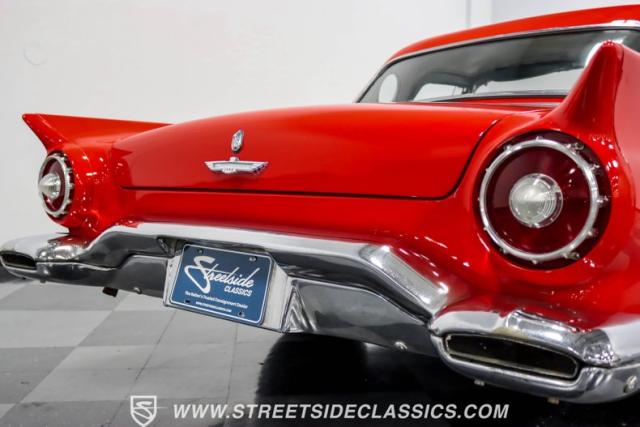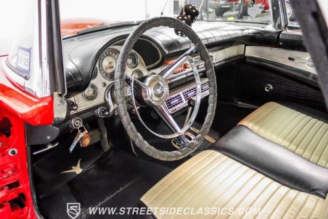 A 312 cubic inch V8 motivates this classic Ford through a 2-speed Cruise-O-Matic automatic transmission. The V8\'s strong output flows through a factory dual exhaust system for proper sound. Power steering makes any driving situation a breeze. Traditional single shock coil spring suspension up front pairs with rear leaf springs to maintain the T-Bird\'s handling characteristics, while drum brakes at all corners bring everything to a stop.