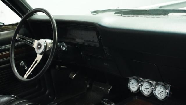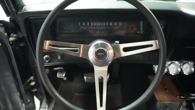 The black vinyl interior delivers pure muscle car attitude with high-back bucket seats and a floor-mounted shifter rising from the center console. Custom auxiliary gauges mounted below the dash provide vital readings, while the GM comfort grip steering wheel puts total control in your hands. The clear, easy-to-read gauge cluster displays all the critical information needed for maximum performance.