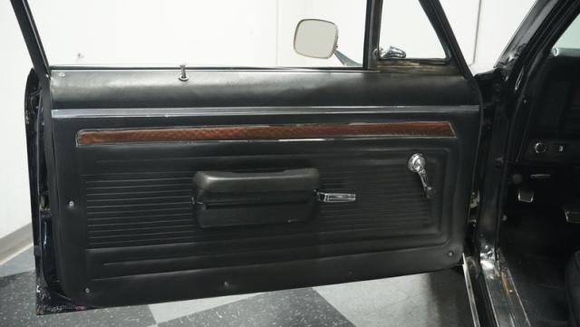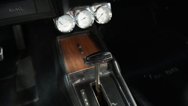 A mighty 396 cubic inch V8 brings genuine big block power to this Nova. The engine bay showcases a polished intake topped by a Holley 4-barrel carburetor, an MSD distributor for reliable spark delivery, and long-tube headers feeding into a throaty FlowMaster dual exhaust. Power flows through a TH350 3-speed automatic transmission to a 10-bolt rear end. The suspension features Bilstein shocks and is completed by front disc brakes for enhanced stopping ability.