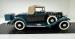Black leather door panels include a map pocket and chrome hardware and both present nicely, while both the bench and rumble seat are covered in black as well with a center seam marked by piping. For the driver, we have a good looking, three spoke black steering wheel and a nicely crafted wood faceplate for the gauges and both the gauges and trimmed panel have filigree type corners and accenting with more art deco influence in the center, followed by another wood panel housing a clock. There\'s another clock in the rear view mirror but that mirror has heavy deglazing. A rubber cover protects the floor and surrounds the shifter and pedals, and all present cleanly.