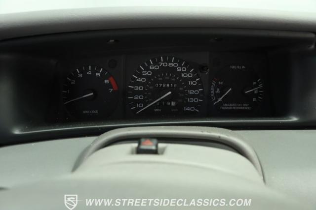 Inside, we find a cockpit-style grey leather interior featuring plush yet supportive six-way power-adjustable bucket seats, separated by a storage console armrest. The wraparound central console and meaty four-spoke steering wheel, along with power locks, windows, mirrors, and sunroof, provide all of the modern amenities required for riding in style. The stock head unit has been replaced with an upgraded AM/FM/CD/AUX Bluetooth-enabled head unit, offering significantly more entertainment options than were originally available in the early 1990s.