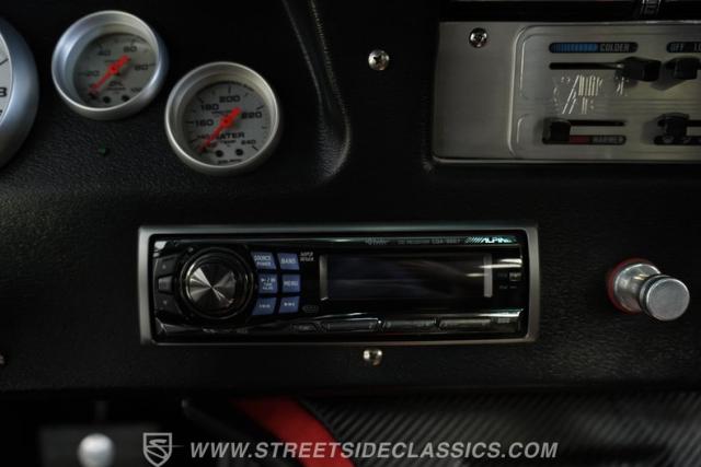 The custom black and red vinyl interior is in great shape throughout, with a pair of aftermarket bucket seats that straddle a center console that harbors the floor shifter, with a set of controls for the comfort and convenience items seamlessly incorporated, including the switch that moderates the exhaust cut outs that give this Chevy its one-of-a-kind sound. Pro Comp gauges provide an accurate read on vital motoring functions, and the added Vintage Air climate control system is in top form to keep you and your passengers comfortable throughout the year. You\'ll also enjoy a top-tier audio experience, with an Alpine AM/FM stereo with Bluetooth connectivity teaming with an assembly of custom-installed speakers to fill the cabin with sound.