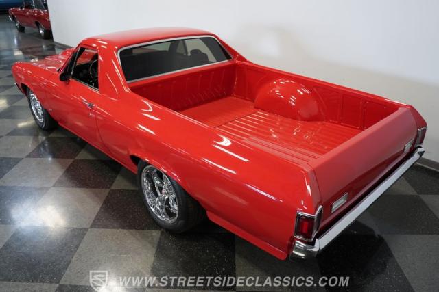 It\'s half car, half truck and 100% absolute asphalt-scorching, attention-grabbing beast! Dressed in pristine red paint and outfitted with an aggressive cowl induction hood scoop that serves notice of the otherworldly power lurking below, this 1970 Chevrolet El Camino 572 Restomod is an outstanding result of inherent curb appeal, blended with skilled workmanship and a thorough assembly of high-quality, performance-centric components. The fit and finish on it is appropriately exact, and it absolutely radiates excellence, cruising on a set of 18\" five-spoke Coy wheels that add the perfect punctuation point to this elite classic.
