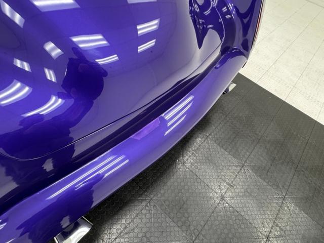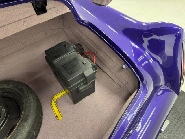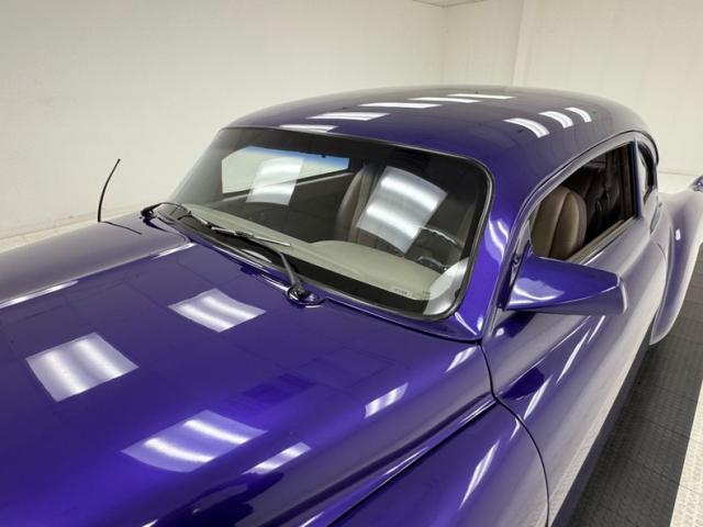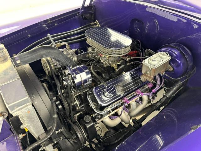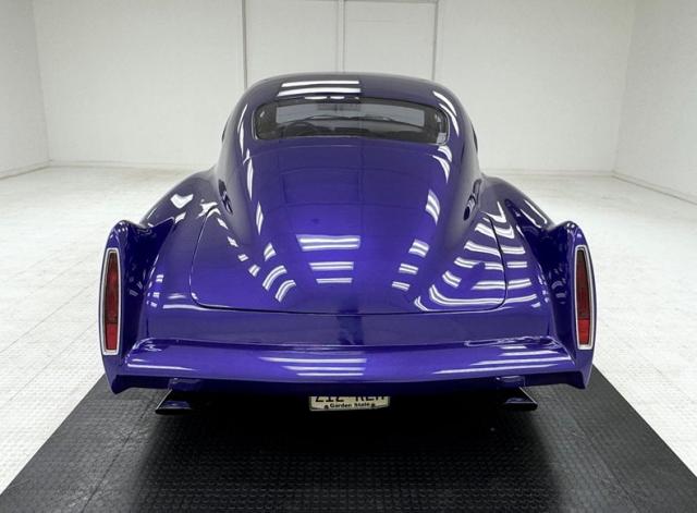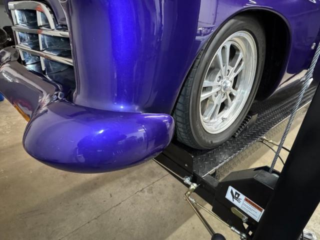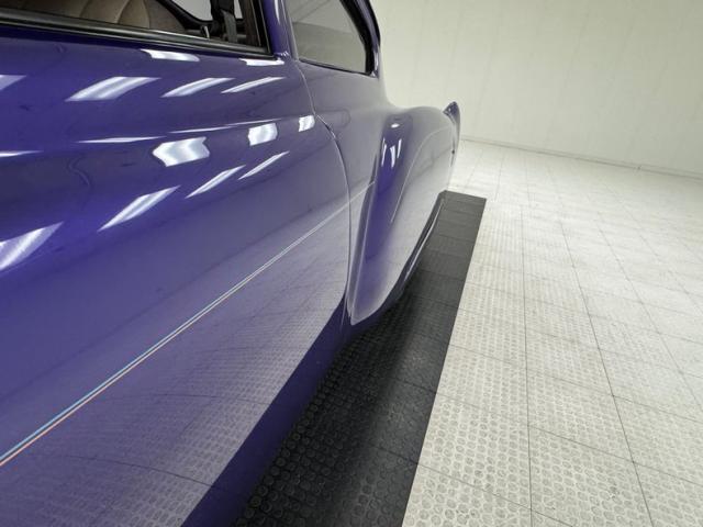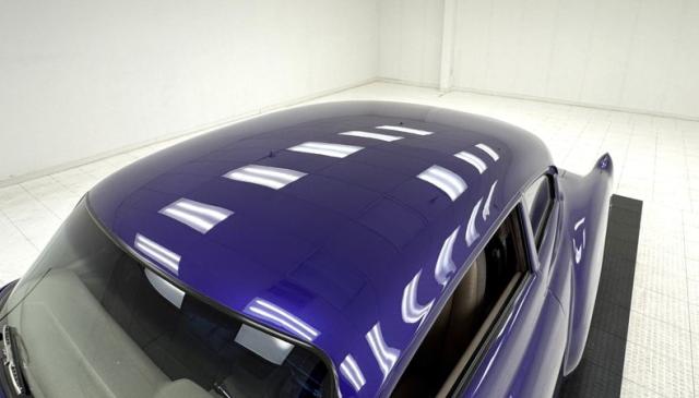 Our consignor has spent copious amounts of money to make this creation and it shows all over it.A custom fashioned chromed waterfall grille, Blurple, (excuse me!), a painted bumper with inserted signal lights, frenched headlights and a bulbous hood and this is just the start.That hood has a gaggle of blue and pink pinstripe flourish and the ornament topper is long gone. The roofline has been chopped and now sports tinted glass. The long front quarters are devoid of any chrome,and the doors use poppers to open them as the handles have been shaved.Custom body matching mirrors hang off of the doors.The back of the car is a beautiful extruded bubble for the trunk and rear glass just above.All shavedand clean.The iconic rear quarters have a bump up on their trailing edges and in lieu of the taillight being there some custom vertical tail lights have been inserted into the backs of the quarters.Another Blurple, (excuse me!), painted bumper seamlessly runs between the rear renters and tail light panels. Fender skirts nearly obscure the rear wheels but these are 15-inch Colorado Custom wheels all polished and wrapped with 225/55R17 low profile rubber.