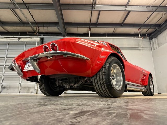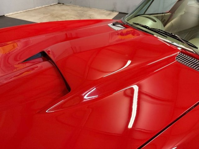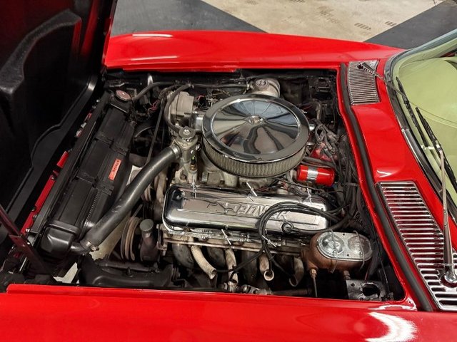 Painted a slick Red paint with polished window moldings. Wiper arms polished. New door handles, driver’s side mirror is new with Chevy logo. New Emblems, new Rocker panel moldings, new gas door, new antenna, new side roof vents, new rubber and felt. Polished aluminum rims with Hankook Kinergy ST white letter tires that are like new. Custom front end with headlights under front and custom aluminum grill. Turn signal light mounted on bottom is new. 427 Stingray hood, chrome wiper cowl vents are new. The tail lights are new. Shark Bit suspension, 4-wheel power disc brakes. Good looker and an eye catcher.