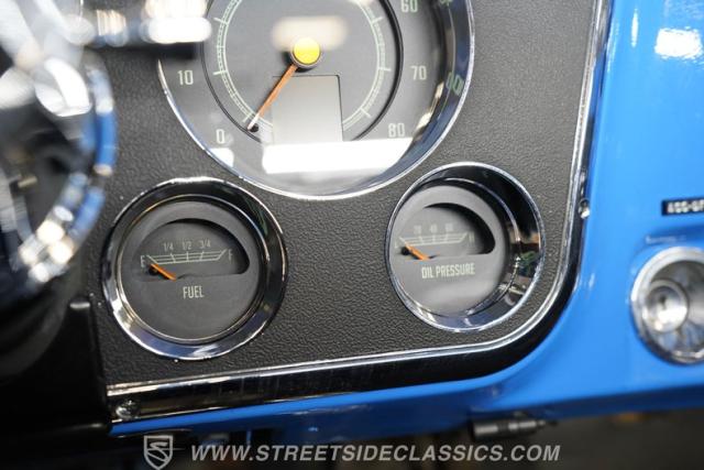 Step inside to a clean and well-appointed interior that blends vintage charm with contemporary conveniences. The cabin features a chrome tilt column, Dakota digital gauges for precise monitoring, and a Pioneer single DIN deck complemented by component speakers discreetly placed under the dash. Power windows add ease to your ride, with switches designed to resemble classic crank handles, maintaining the truck\'s authentic feel. The aftermarket air conditioning controls ensure comfort no matter the weather, while the overall interior shows very little sign of use, reflecting meticulous care and restoration.