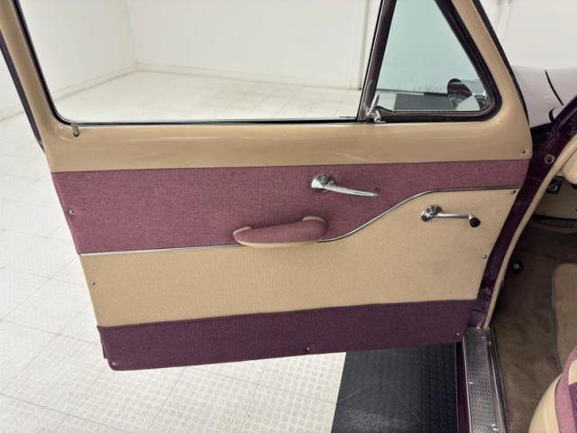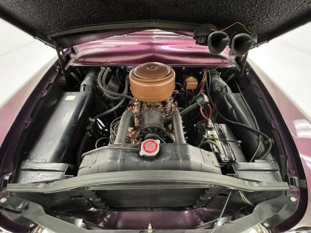 In a shade that would have been unique in \'51, and definitely different for this vintage in 2025, Prowler Purple Metallic is the unique color of choice and it just seems to work. As an early 50\'s can and one intended as a commuter, this car predates the excessive use of ornamental chrome and is nicely understated with protruding trim that terminates with the tail lights, escutcheons on the door handles, and polished trim that borders the visor. Up front, big chrome starts to develop with a big central bar with torpedo accents under an arching grille surround, all in wide chrome. Out back however, the bumper has been painted body color while exhaust tips contrast in color as they emerge from underneath. 15-inch tan painted wheels wear moon style hubcaps, beauty rings, and white wall 205/75R15 tires, the rears partially obscured by ribbed fender skirts. The only imperfection we find is a minor one, a scuff or the rear bumper.