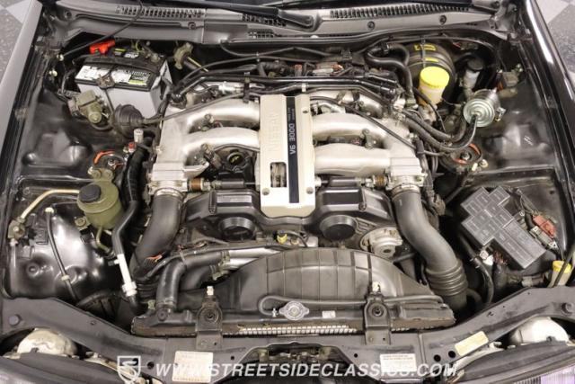 This 1990 Nissan 300ZX is a gem of JDM racing excellence dressed in a Black Pearl finish and T-Tops that invite the sky inside, offering a visceral driving experience that\'s as close to freedom as you can get on four wheels. At the rear, JDM taillights cast a distinct glow, signaling your departure from the mundane and into the realm of speed. Mounted on 18-inch wheels that assert their dominance over the tarmac, this 300ZX is not just prepared but eager to create a gap between itself and any challengers daring to follow.