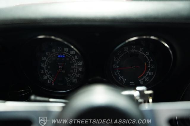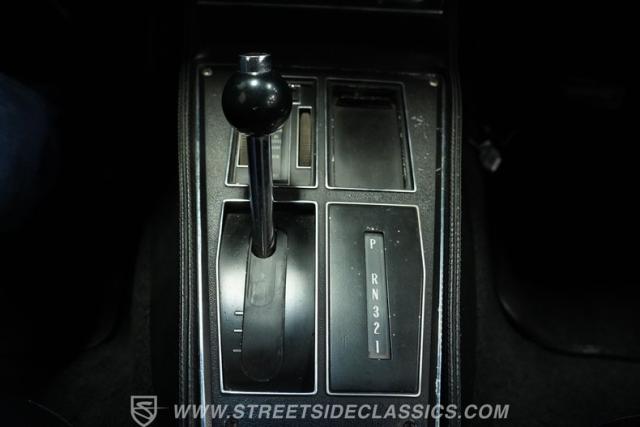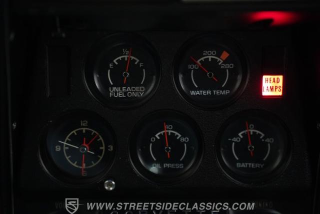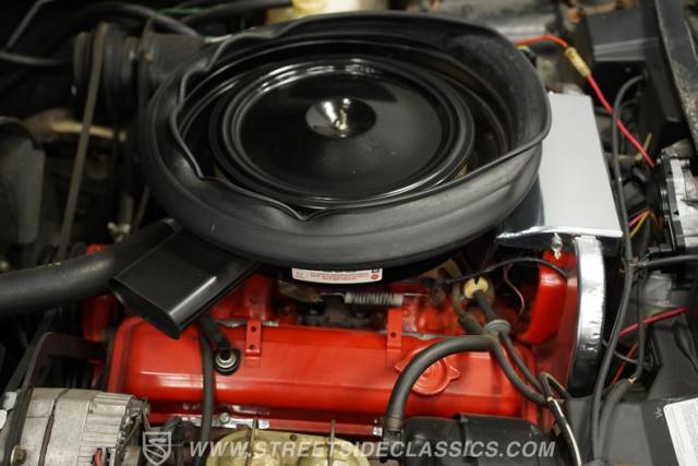 Step inside to find a well-preserved interior that balances vintage charm with practical upgrades. The black vinyl bucket seats offer a comfortable ride while maintaining the authentic look of the era. The cockpit features a crack-free dash and door panels, with gauges that provide clear, easy-to-read information. Modern touches include an upgraded AM/FM/AUX stereo system, power windows, and a tilt steering wheel, enhancing convenience without sacrificing the classic vibe.