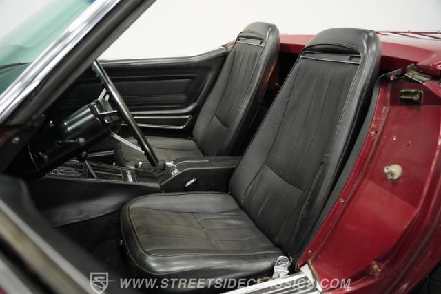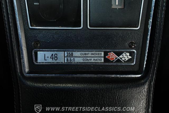 Beneath the hood lies a numbers-matching 350 V8 engine paired with a smooth-shifting TH400 3-speed automatic transmission. The engine bay maintains its stock appearance, preserving the car\'s authentic look while showing signs of careful maintenance. Power steering and R-134a air conditioning add to the driving comfort, making this Corvette as enjoyable on long cruises as it is at car shows. The drivetrain and suspension are in solid condition, ensuring a responsive and reliable driving experience.