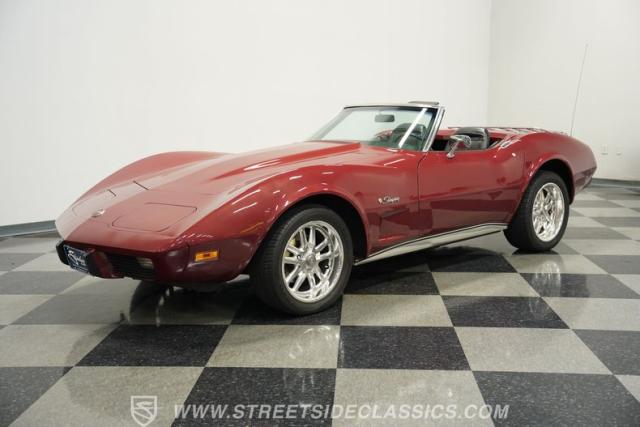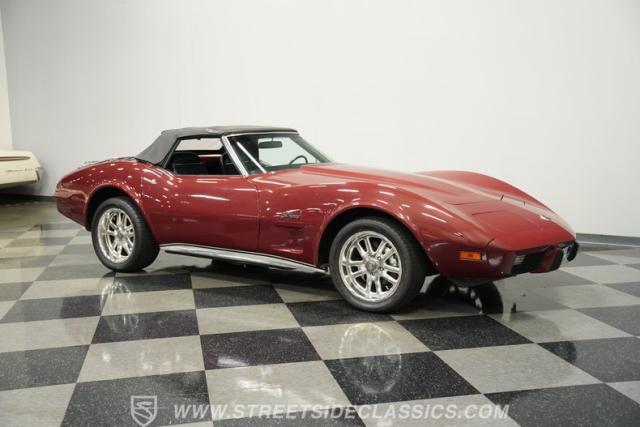 The allure of a classic American sports car is timeless, evoking memories of sun-soaked drives and the roar of a powerful engine beneath the hood. This 1975 Chevrolet Corvette Convertible represents the end of an era, being the final year of the iconic C3 convertible. Its striking Dark Red Metallic paint commands attention, a color that speaks of passion and performance. Imagine cruising down the highway with the wind in your hair, the manual convertible top down, and the unmistakable presence of a true classic making a statement wherever you go. This Corvette is ready to write its next chapter with you.