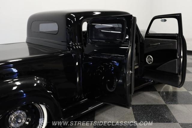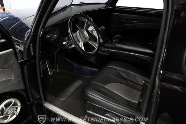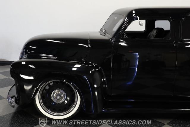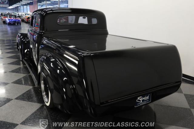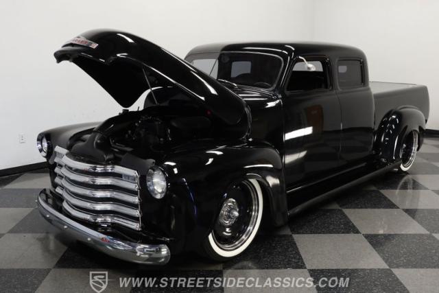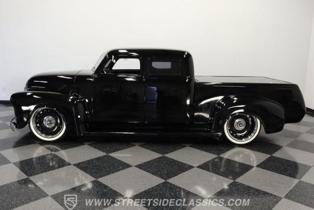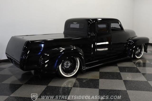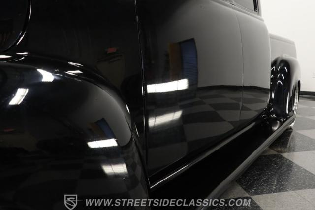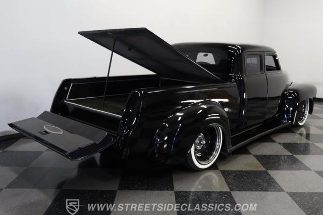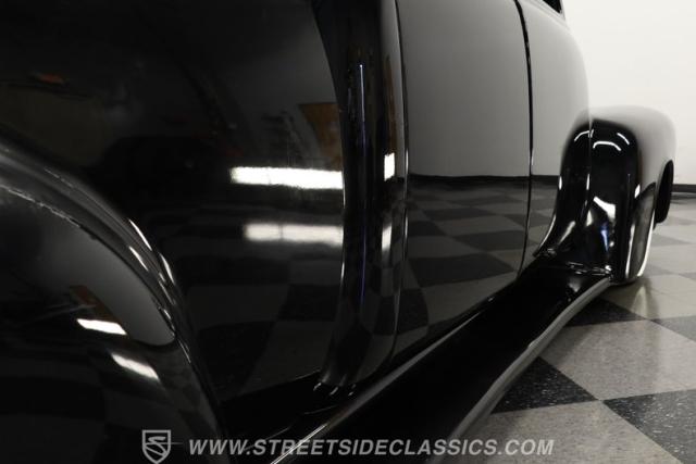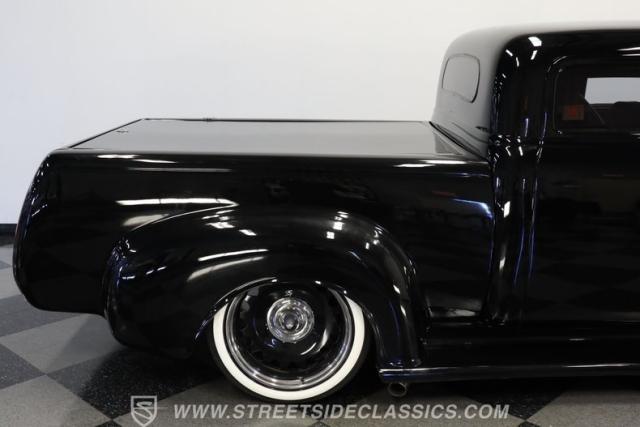Few vehicles in the history of the autoverse will turn heads as quickly as a well-executed, chopped-and-dropped restomod. With its fully custom fiberglass body, bulging fenders, and shaved handles, this 1948 Chevrolet 3100 LS Restomod has been painted in a deep, glossy black. That mirror finish stretches across its extended cab, while a custom tailgate and hard tonneau cover give this truck a far sleeker profile than when it rolled off the assembly line.
