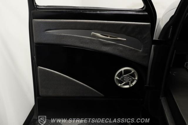 Under that expansive steel hood, we find a modern 5.7-liter LS1 V-8 engine. With its aluminum block and heads, composite manifold, individual coil packs, and electronic fuel injection, spent gases are expelled through a stock-style manifold before ultimately exiting through a trick side-exit exhaust. That power is routed through a 4L60E four-speed automatic transmission before heading out to a rear end that transfers those ponies to the pavement via a set of polished 20-inch Detroit Steel-style wheels shod in modern white-wall tires.