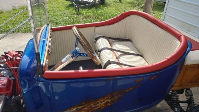 1923 Ford T-bucket. Beautiful fiberglass, custom metallic blue paint and graphics \'Lost in the 50s\', pin striped frame, 350 V-8, Demon carburetor, M/T valve covers, headers, dual exhaust, 4 rear shocks, custom wood trunk, trailer hitch, marine vinyl red and white interior. (Photo of engine before assembly) Runs great. Please Note The Following **Vehicle Location is at our clients home and Not In Cadillac, Michigan. **We do have a showroom with about 25 cars that is by appointment only **Please Call First and talk to one of our reps at 231-468-2809 EXT 1 ** FREE Consignment Visit Our Site Today Easy To List Your Vehicle and Get it Sold in Record Time.