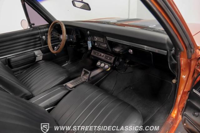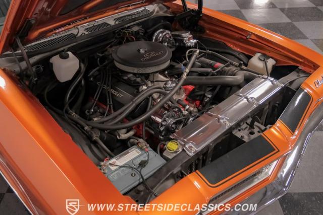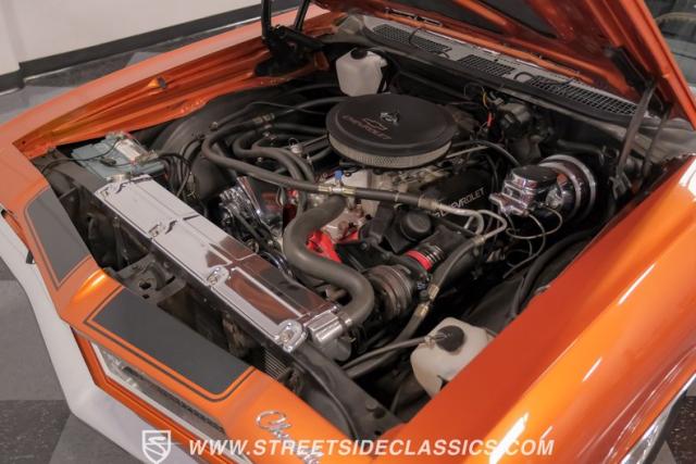 Now, let\'s talk about what makes this Chevelle a true street hero its heart. Under that sculpted hood lies a roaring 454 V8, breathing fire through a FiTech fuel injection system and exhaling through FlowMaster mufflers that make for a symphony of power. Mated to a 3-speed automatic TH350 transmission that shifts as smoothly as a hot knife through butter, it\'s a setup that promises adrenaline-pumping action at the mere flick of the throttle. Power disc brakes up front and power drums in the rear ensure you stop as impressively as you go, while the CPP trailing arms keep everything tight and right through the corners.