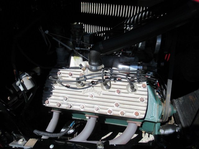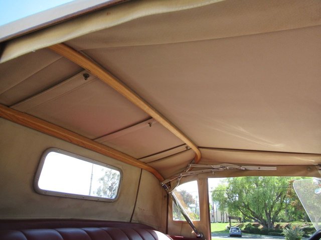 Check out this old school 32 Ford Roadster that is a mild custom that was probably built in the early 40’s. Fresh out of a private collection in Southern California, this all original Henry Ford Steel classic has an upgraded AB Flathead V8 with Vintage Edlelbrock Heads, Edelbrock Super aluminum intake manifold with dual carburetors, 3 speed manual transmission, Classic VDO gauges with spun machined cluster, 12 Volt system, push button start with electric fuel pump, light Tan canvas folding convertible top complimented by a dark chocolate brown vinyl interior and old 3 spoke Banjo Steering wheel. The car has upgraded 1940’s juice brakes, 15 inch Black spoke wheels and a drop axle with shocks. It still shows very well with its Burgundy and Gloss Black two tone paint. This isn’t some replica but rather a great piece of Hot Rod history that will make a great addition to any collection.