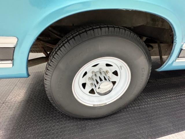 Not quite ready for show, but complete and stock looking is the 392ci V8, rated at 200 horsepower and fueled by a 4-barrel carburetor. Setting the truck in motion is a T445 4-speed manual transmission routing power to the Dana 60 axle in back. Power brakes, power steering, and headers are on board.