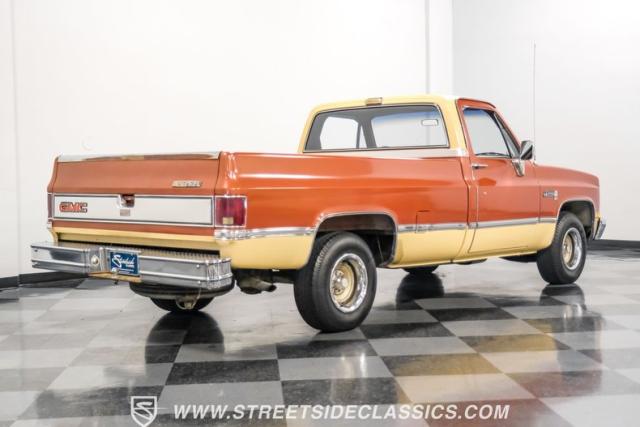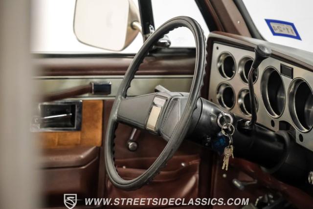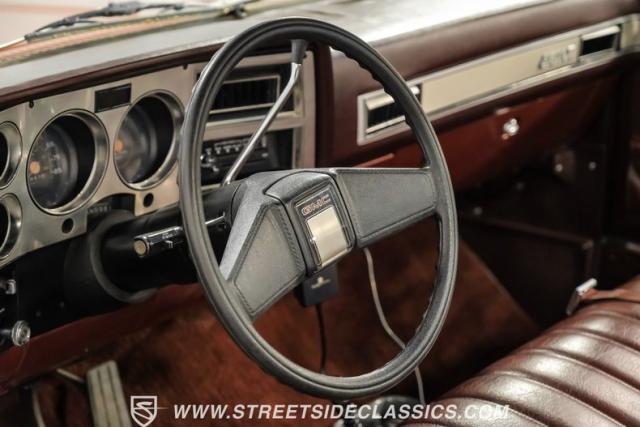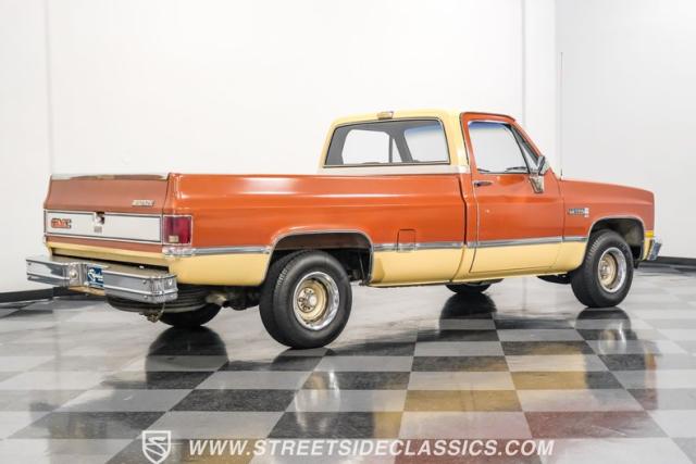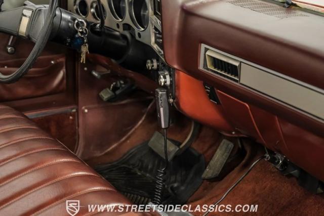 Inside, the Sierra 1500 welcomes with a mahogany vinyl interior that captures the essence of 1983 design, providing a durable yet comfortable environment. The bench seat, featuring column shift, is poised to accommodate with simplicity and purpose. Every element, from the unaltered AM/FM radio with a CB radio, to the original dashboard free of modern interventions, ensures that the cabin of this GMC is as authentic as it is functional. Power steering and air conditioning are present, although the AC system does need servicing to get back to full operation again, and they underscore the truck\'s readiness for both daily tasks and leisurely escapades.