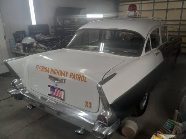 1957 Chevy 210 Police Car. History was a USAF MP car. Has upgraded rebuilt 350 V8 with manual M21 4 speed transmission with Hurst shifter. Aluminum radiator, engine dressed up nicely. Great body perfect Petina! Floors have already been replaced, welded in nicely. All backs of rockers are in very nice shape with all braces intact and rust free. Interior is blue with white headlinner. I replaced all the side windows with brand new Has 9-foot whip antenna. steel light bar with two short whip antennas and original rare and very hard to find round top red light! Working lights and siren! Custom ordered official Highway Patrol reflective decals. Very nice original chrome with rust free bumpers. Have many receipts and books. New upgraded radios. Please Note The Following **Vehicle Location is at our clients home and Not In Cadillac, Michigan. **We do have a showroom with about 25 cars that is by appointment only **Please Call First and talk to one of our reps at 231-468-2809 EXT 1 ** FREE Consignment Visit Our Site Today Easy To List Your Vehicle and Get it Sold in Record Time.