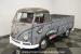 Simplicity and function define the interior of this Volkswagen truck. The red vinyl bench seat provides comfortable seating for driver and passenger alike. The gray painted dash houses straightforward gauges and controls within easy reach. Rubber floor coverings throughout the cabin offer durability and easy maintenance. The minimalist approach to the interior reflects the vehicle\'s utilitarian purpose while providing everything needed for driving without unnecessary frills or complications.