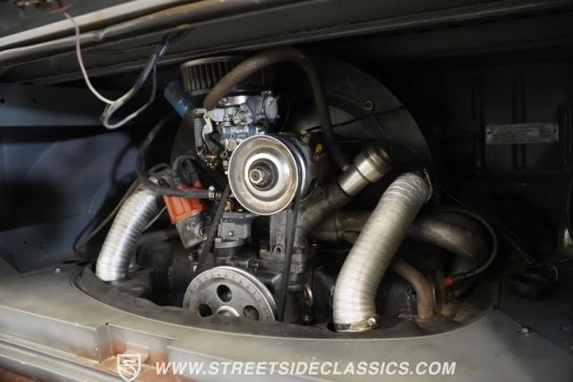 For propulsion, a freshly rebuilt 1600cc dual port engine sits at the rear, with just about 100 miles on the rebuild and currently running on 40-weight oil. A 4-speed manual transmission, rebuilt in 2023, directs power to the wheels through a transaxle setup. The fuel system utilizes a single 2-barrel Solex carburetor for reliable performance. The suspension features VW\'s proven swing axle design, while stopping comes from front disc brakes. This mechanical package offers a solid driving platform for this classic German truck.