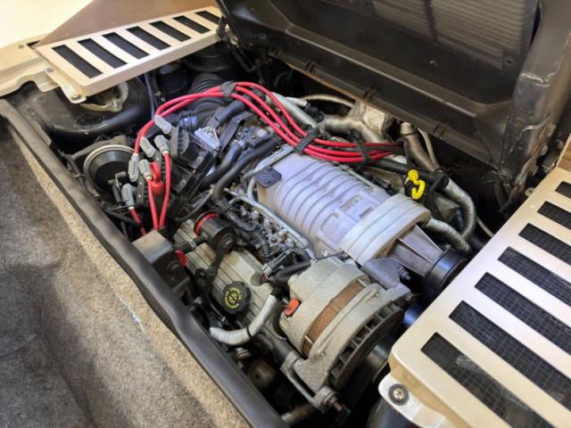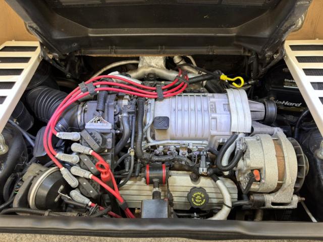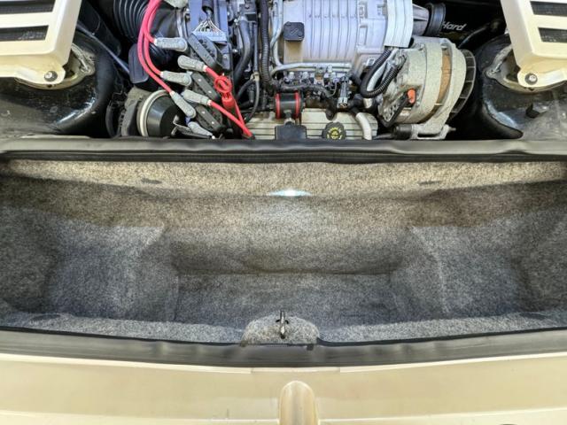 Lifting the trunk lid reveals a small storage area and the mid mounted 3.8 liter supercharged V6, fuel injected and tied to a 4-speed automatic transmission keeping power at the back with 3.33 gears. The brakes are Wilwood power assisted and are configured as disc in front and rear.