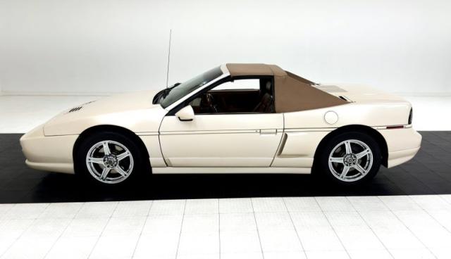 For consignment, a 1988 Pontiac Fiero GT convertible, with some customizations to emulate a Ferrari 355 Spider. Remember, Fiero was never offered as a convertible, but some Ferrari\'s were. As a mid-engine platformed car, the Fiero is commonly used to create tributes to Ferraris and other exotic cars.