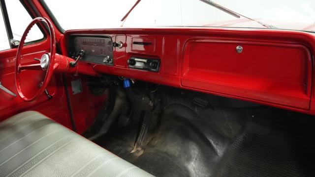 Under the hood is clean, with a trusty 230 cubic straight-six engine with an alternator as its only accessory. There is plenty of room to work on this truck if needed, however it is so simple, there is just not much that can go wrong on this tough little truck. Driving this Fleetside pickup is really fun. The column mounted \"three on the tree\" shifter works well with the straight-six engine and is a pleasure to operate.
