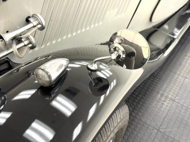 The gray body is nicely offset by the contrasting black fenders connected by a running board and framing the cabin with style. There\'s a lot going on in the front with symmetrical headlights flanking the vertical bars of the grille, a chrome grille shell, side mirrors posted on the fenders, an eagle ornament on the radiator cap, (which is actually a gas cap, more on that soon), and fog lights on the front apron. This of course is underscored by the chrome bumper and it\'s all convincingly MG. 15-inch wire wheel covers dress up the 165/80R15\'s and diminutive tail lights mimic those of the real deal, while twin exhaust tips, large for an MG, will cause those pondering authenticity to pause. Imperfections are minimal and include some brightwork that is less than pristine and a chip in the fiberglass near a hinge.