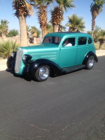 All steel street rod. Nice teal and black paint job.
