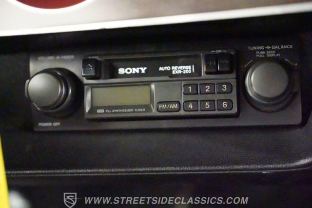 The fully restored black vinyl interior showcases meticulous attention to detail. Bucket seats with a center console provide excellent support and comfort. The dash displays clear, easy-to-read gauges while the AM/FM cassette player supplies the soundtrack. Power steering makes maneuvering effortless. The door panels, headliner, and carpeting maintain period-correct authenticity throughout the cabin.