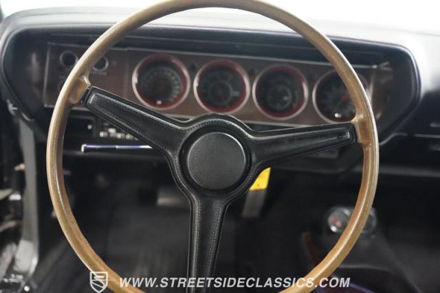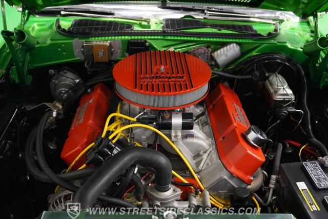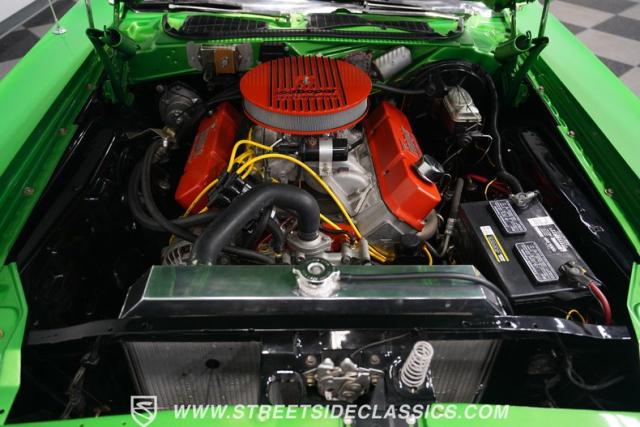 The 440 cubic inch V8 engine delivers impressive performance through a reliable A727 TorqueFlite automatic transmission. The powerplant breathes through Hooker long-tube headers and a Borla dual exhaust system. Performance upgrades include Indy cylinder heads, Quick Fuel 4-barrel carburetor, and an aluminum radiator for enhanced cooling. Front power disc brakes provide strong stopping power.