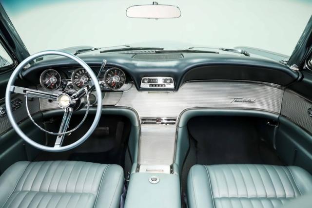 INTERIOR: It is every bit as stylish as its exterior, blending luxury and sporty flair in true Thunderbird fashion. The design is centered around a sleek console that gives the cabin a cockpit like feel and adds to the Roadster\'s sporty personality. Beautiful fluted trim on the doors flows seamlessly into the dashboard and continues into the center console, creating an elegant wraparound design. The dash area is in mint condition and showcases the famous swing-away steering wheel to make entering and exiting the car easier. The seats have been recushioned and upholstered, seatbelts have also been added for improved safety. As part of the desirable Roadster package, the car includes the signature tonneau cover that easily transforms the Thunderbird from a practical four passenger convertible into a sporty two seater in moments. Power windows are a convenient feature, particularly when the tonneau cover is installed, making it easy to operate the windows without reaching awkwardly.