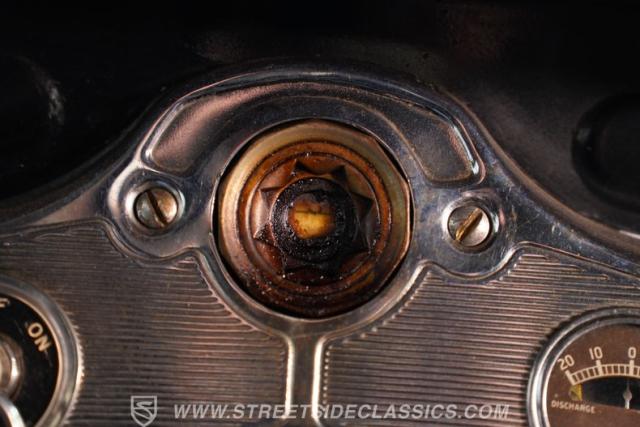 Inside, the cabin exudes vintage appeal with its cloth seats. The simplicity of the era shines through in the spartan yet functional interior. A floor-mounted shifter for the 3-speed manual transmission sits ready for action, while the dash sports clear gauges that have stood the test of time. The cloth mohair-style door and trim panels add texture and period-correct ambiance to the cockpit. The windshield tilts out from the bottom to provide fresh air to the cabin.