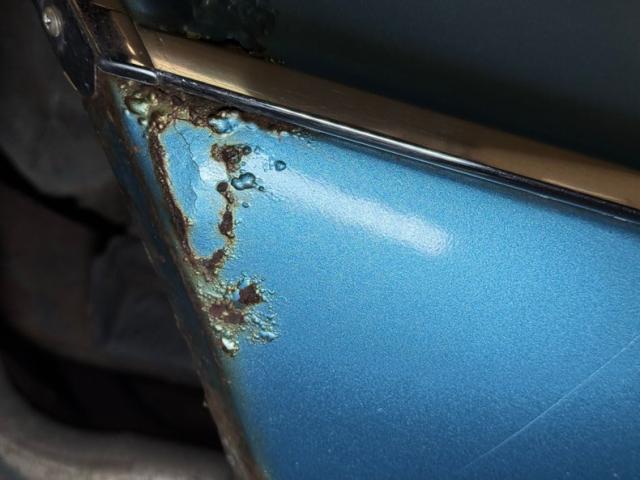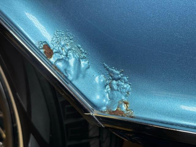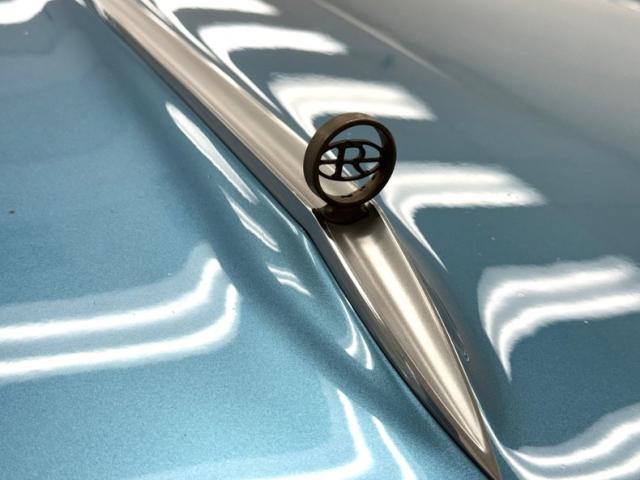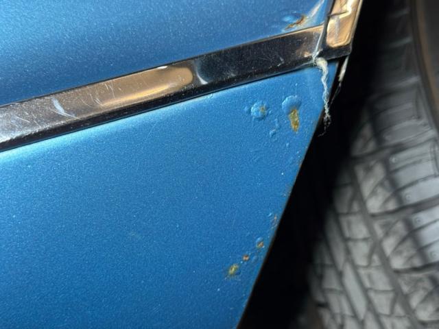 We\'ll start with the color, which is Marlin Blue, but you could paint this design virtually any color and still have a great looking car. The star of the show is the front where ribbed columns cover the markers, leading to peaked roofs that are the fenders, wrapped at the base by a contouring chrome bumper. Dual headlights which exist in individual cylinders are inboard on an egg crate grille that follows the shape of the pointed hood. In profile, quintessentially 60\'s with long, narrow panels and faux fender ducts on the back in an age when faux accents were a thing. The tail is a counter to the elaborate front, simple rectangular tail lights after a flat trunk lid and above a curvaceous bumper that takes in the license plate box. It\'s here we find some detail trim on the reverse lights while the Riviera \"R\" logo is placed on the tail lights. On this car, twin chrome pipes protrude from underneath. The paint shines with original like luster and is in very good condition, as is the brightwork. Imperfections include bubbling in several spots, cracking paint, surface rust at the rocker panel, and some just beginning to form on a bumper wrap around.