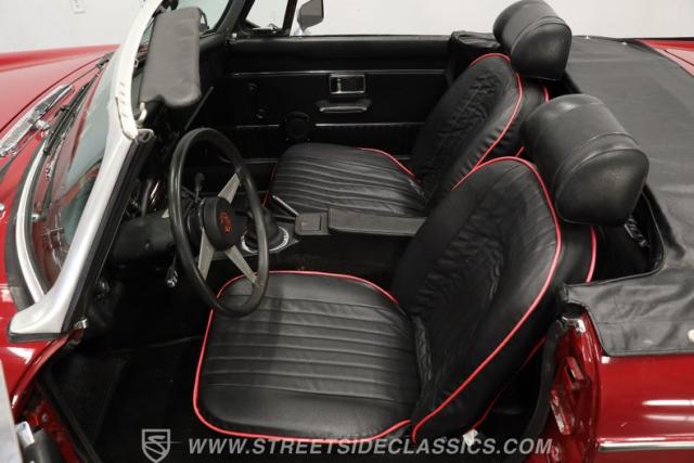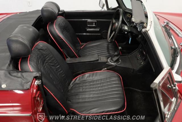 Under the hood, this MGB is powered by a 1.8-liter inline 4-cylinder engine equipped with dual SU carburetors, offering a smooth and engaging drive. The 4-speed manual transmission shifts effortlessly through the gears, providing a direct connection to the road. The engine bay presents a factory-correct appearance with freshly painted black components and well-maintained hoses and belts. Front disc brakes and factory-style suspension contribute to confident handling, making this classic convertible a joy to drive on both winding roads and city streets.
