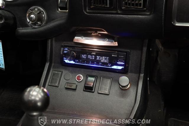 Step inside to find an interior that balances vintage appeal with practical comfort. The vinyl bucket seats are well-maintained and soft to the touch, complemented by door panels in good shape and a center console that keeps the cabin tidy. The instrument cluster maintains its classic look, enhanced by the addition of a modern JVC Bluetooth-capable radio for your entertainment needs. The overall interior quality remains very good, inviting you to enjoy every journey in style.