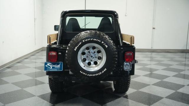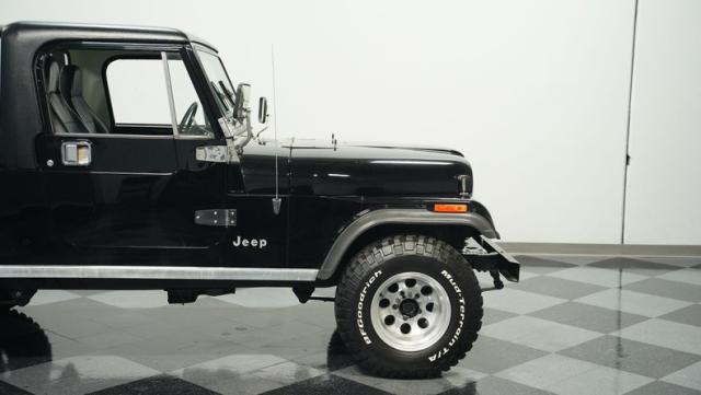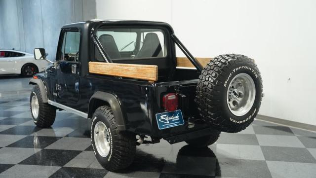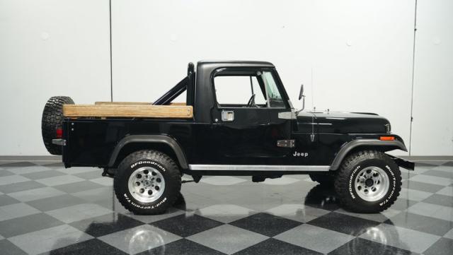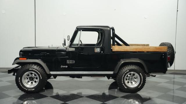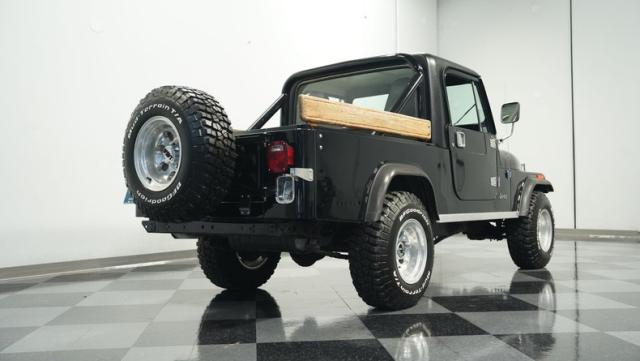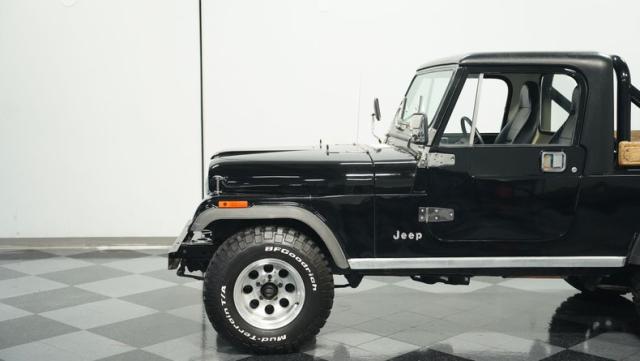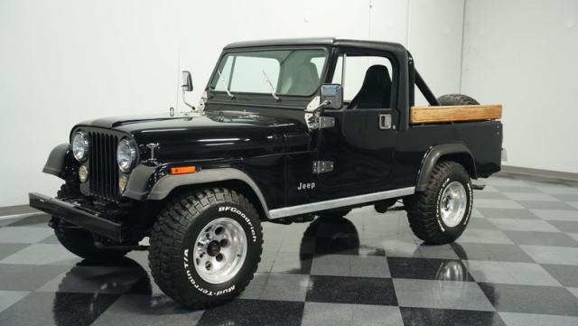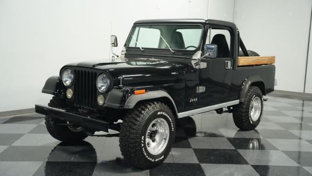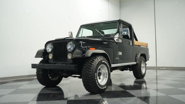 While there has been much well-deserved fanfare and love for the current Jeep Gladiator, it helps to remember where the unmistakable pickup truck variant of one of America\'s most storied and iconic brands came from. This 1981 Jeep Scrambler CJ8 we have for you today is where it all started. This year represents the inaugural year for the exceptionally practical long-bedded Jeep. Based on the nearly unstoppable CJ-7, this fully repainted black-on-black beauty is highlighted not only by its classic boxy stance but also by its wooden bed rails and big 31-inch BF Mud-Terrain tires.