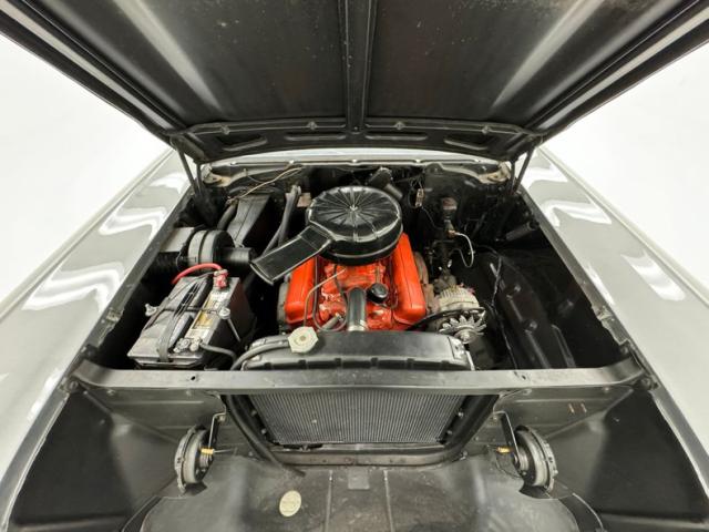 Super clean, super simple, and simply orange is the 283ci V8 under the hood with a 2-barrel carburetor and a 3-speed manual transmission behind it, sending power to the rear wheels and 3.55 gears. Drum brakes occupy front and back wheels.