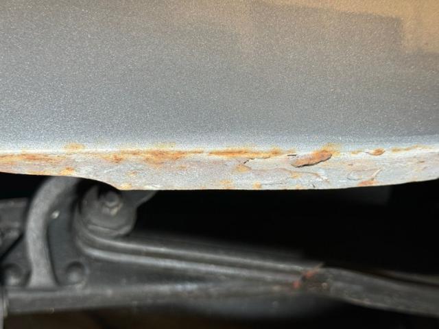 Relatively clean underneath with some typical surface rust, a bit of sludge on the rear differential and knuckles, oil on the pan, flywheels cover, and transmission. This is driver quality with zero invasive rust but with signs of potential flaking on the pinch welds under several doors. The dual exhaust finds their way to stock style mufflers before exiting behind each rear wheel. Coil springs are the suspension configuration up front and leaf springs out back.