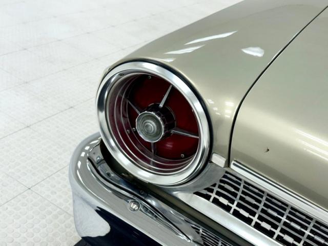 Remember when earth tones were the trend? Well, here\'s one of the lighter hues and now is present with two stage quality as the Sandshell Beige is without flaws on this car. Designer thought the slab sided 500 needed some dress up trim and so obliged with a polished spear that starts on the door and circles a hairpin turn in back followed by the trim running parallel and extending over the front fender. Your eye is also captured by the series of vertical trim pieces in back and also by the broad band that anchors the wide C-pillar. The grille is mimicked by the latch panel trim between the distinctive Ford round tail lights with their crosshair accenting. Half moon headlight covers are flashy and the yellow fog lights on the bumper are a nice addition. 15-inch chrome steel wheels perpetuate the theme and they\'re wrapped in wide white wall tires, partially obscured in back by the streamlining fender skirts. It\'s all very nice and ready for show and go.