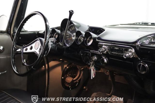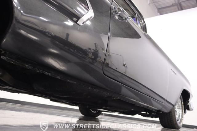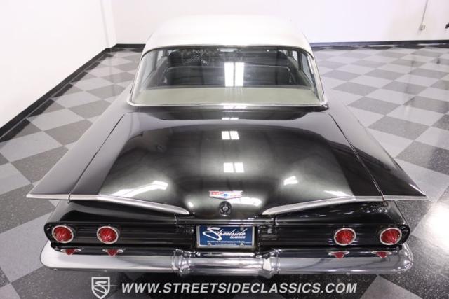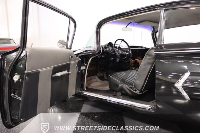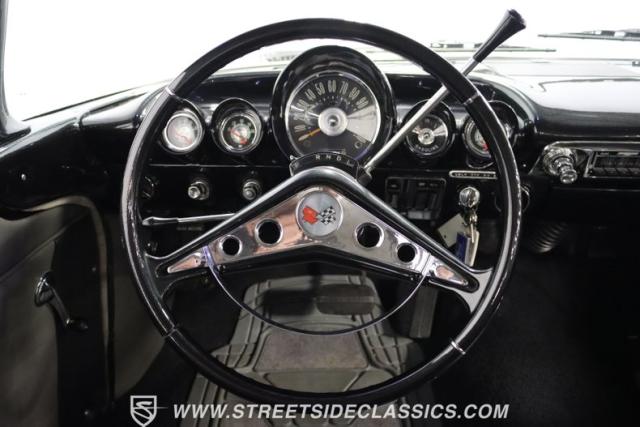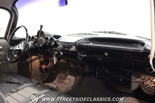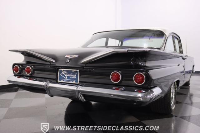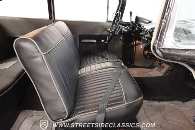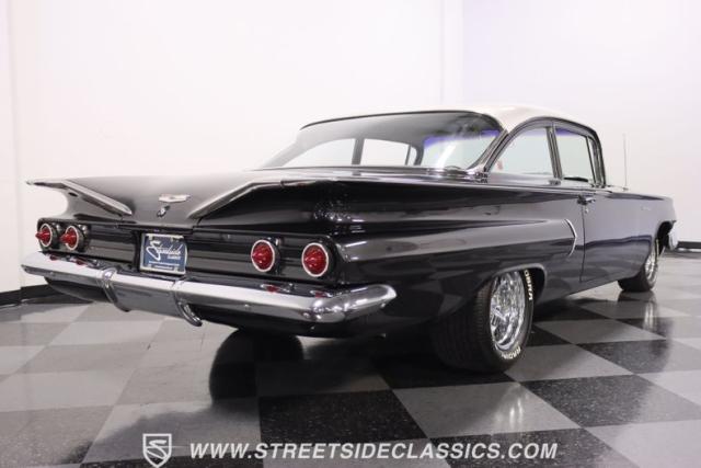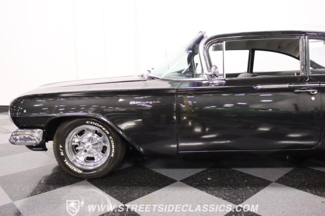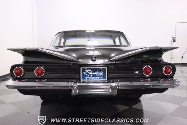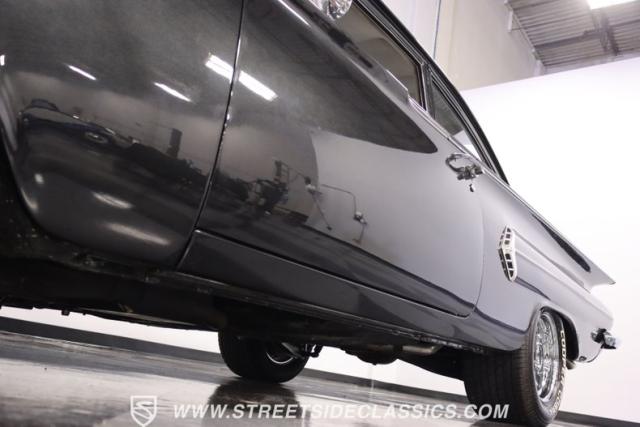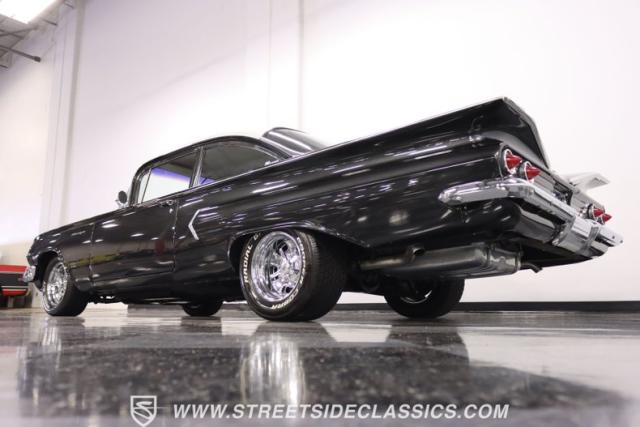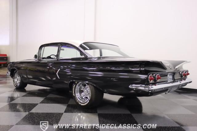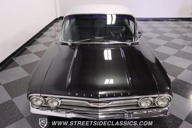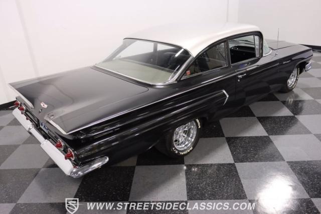 Lurking in the shadows, with a demeanor that whispers of midnight rides and the allure of the open road, this 1960 Chevrolet Biscayne Restomod blends craftsmanship with classic lines. Adorned in an intoxicating Black Diamond paint that captures the essence of a starless night, this automobile boasts a finish so rich, it seems to absorb light. Silver metallic accents crown its top, adding a layer of sophistication to its muscular frame. Rolling on 15\" Cragar wheels wrapped in Cooper Cobra tires-235/60R15 at the front and a more aggressive 295/50R15 at the rear-this Biscayne not only looks the part but also promises performance that matches its menacing stance, thanks to a meticulous restoration concluded around 2021.