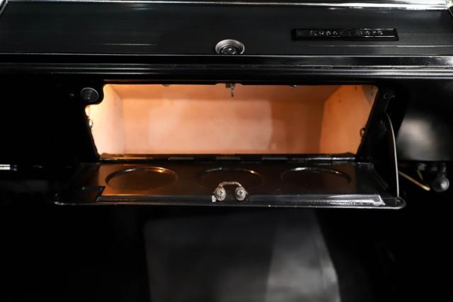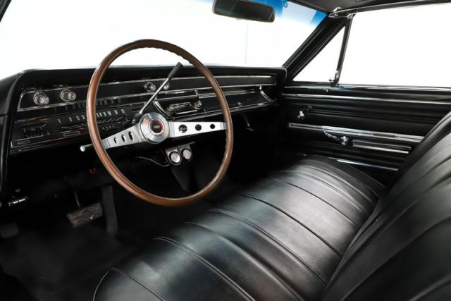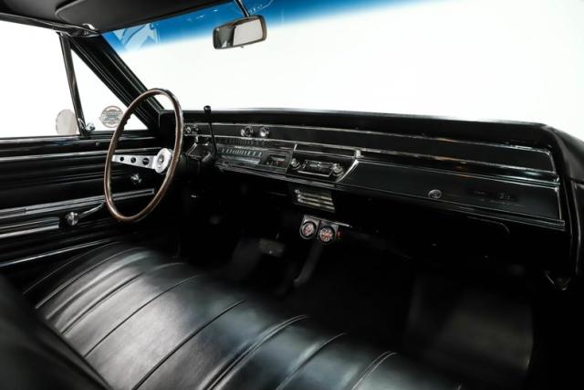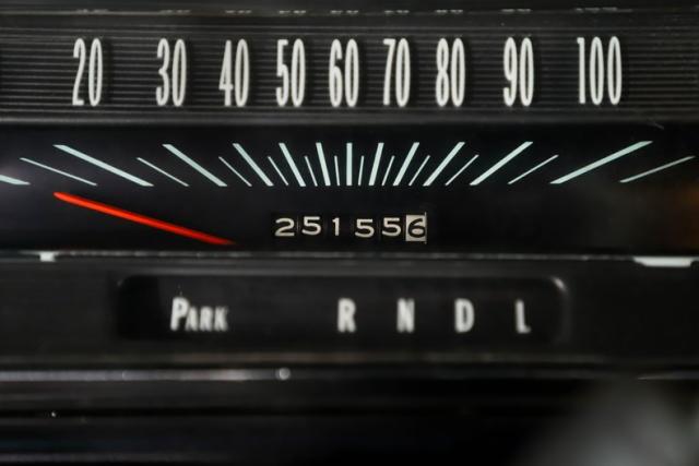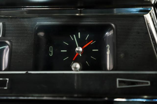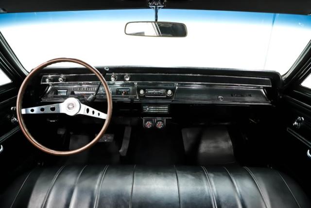 INTERIOR: No complaints here! Totally restored with factory finishes. The bench seats are reupholstered in matching vinyl and are very comfortable. The door panels and side panels were replaced and look fantastic. The dash pad, headliner, sun visors, rear shelf, and carpeting all look new. It has the optional 2 spoke steering wheel that feels great in the hand. It is equipped with the factory correct am/fm radio and climate controls. The glove box liner was replaced and all the interior metal was neatly painted black. The builder added Sunpro oil pressure and temperature gauges under the dash to monitor the vitals. The dome light is working.